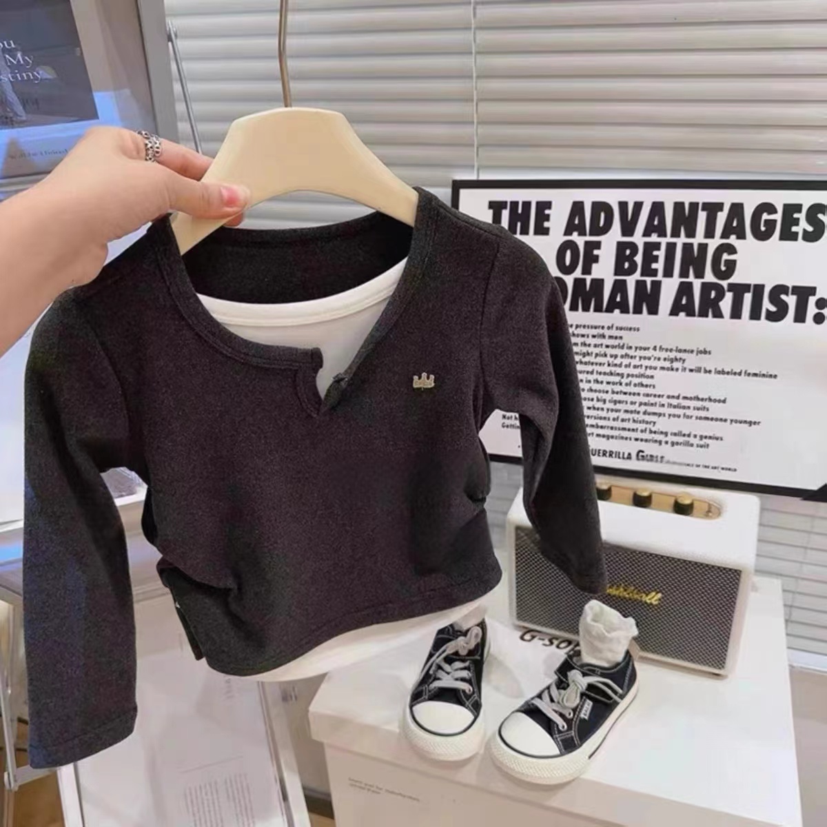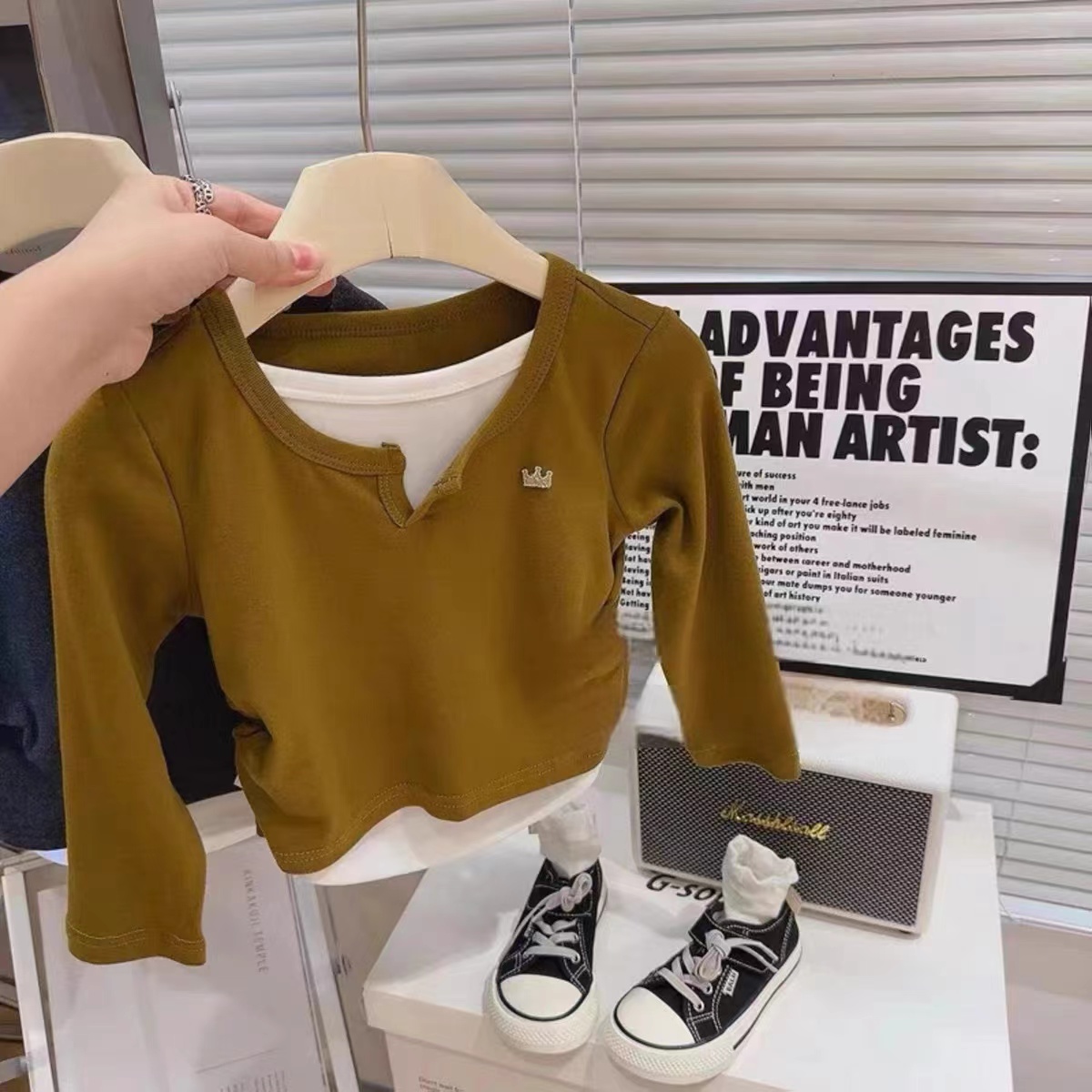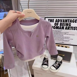T恤儿童宝宝假两件保暖上衣 洋气百搭长袖 女童德绒打底衫 秋冬新款