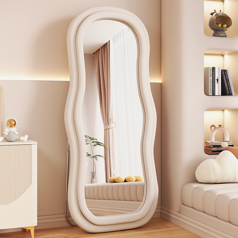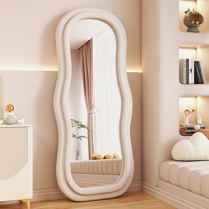网红穿衣镜家用卧室女生轻奢落地试衣镜子大波浪ins风异形全身镜