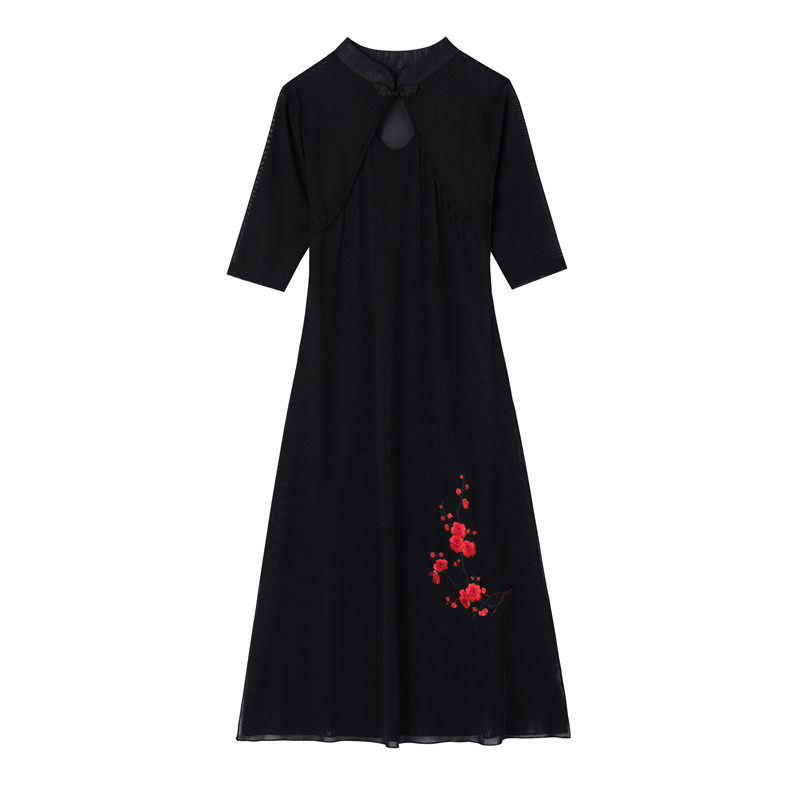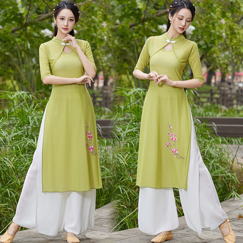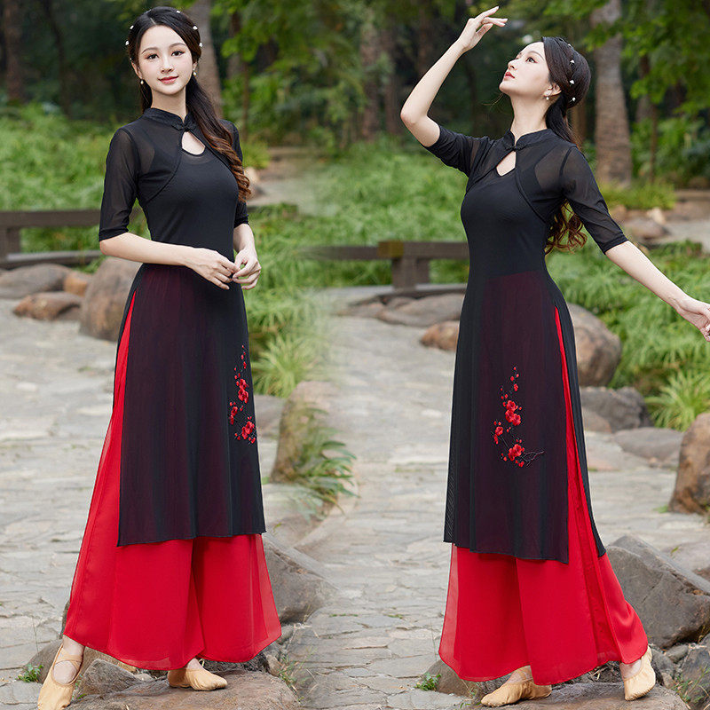 新款 现代绣花纱衣飘逸表演舞台舞蹈服 旗袍古典民族风广场舞服套装