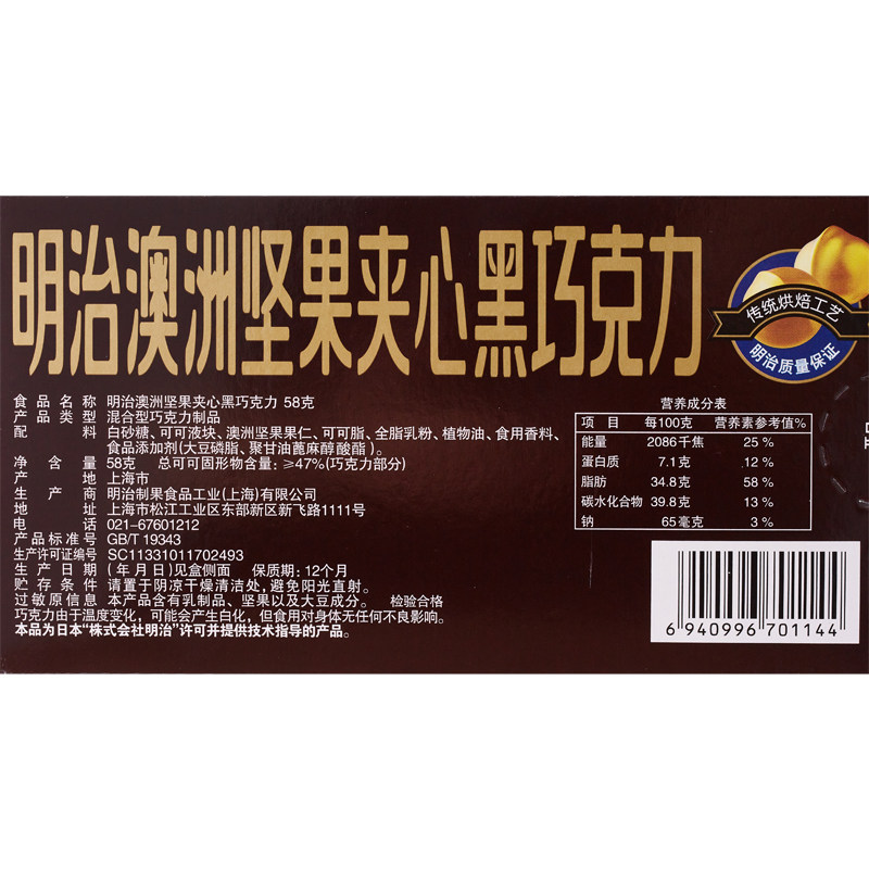 明治meiji特纯黑巧克力可可含量60%黑巧65g