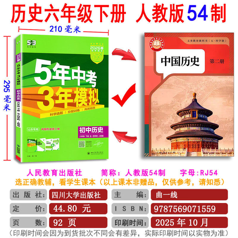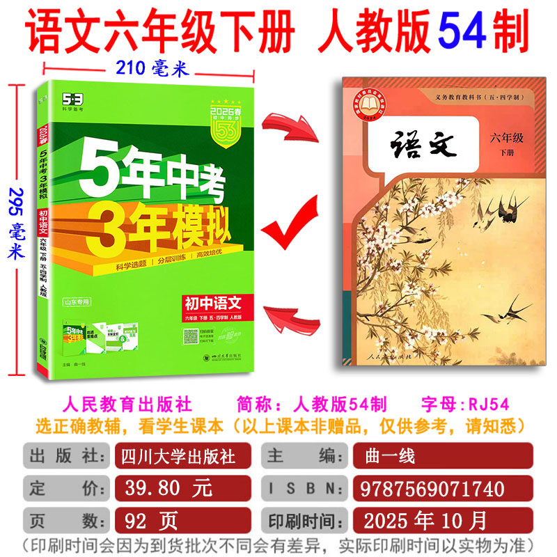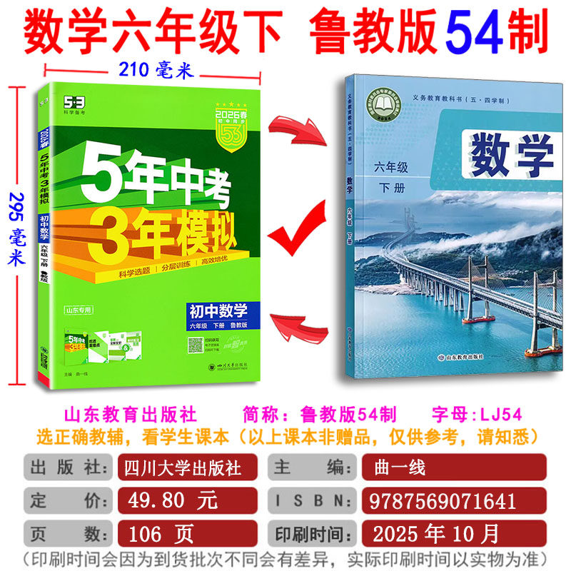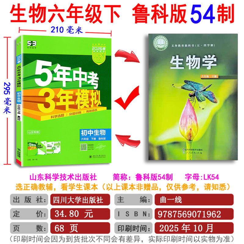 五四制2026五年中考三年模拟同步六七八九年级上下6789上语文数学英语物理化学八年级生物下册书鲁教版 任选 54制53试卷山东专用