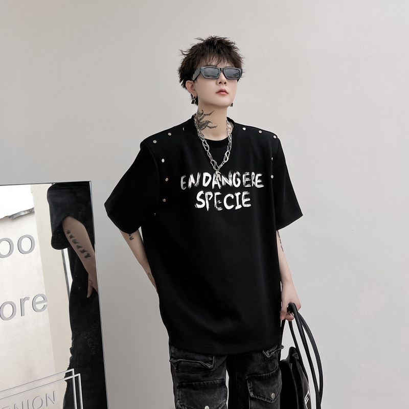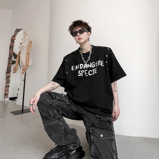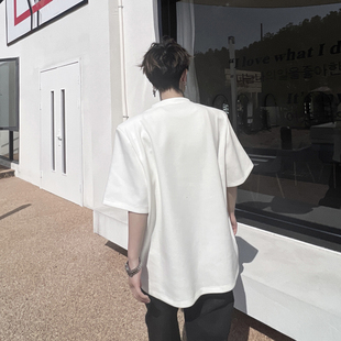 休闲痞帅半袖 t恤男垫肩韩版 上衣 小众高级感字母印花短袖 2024夏装