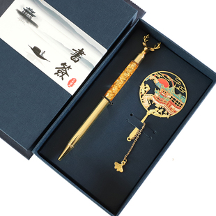 圣诞节山海经瑞兽故宫金属黄铜书签精致高档礼盒定制刻字精美古典中国风创意文创送老师学生纪念品商务礼品