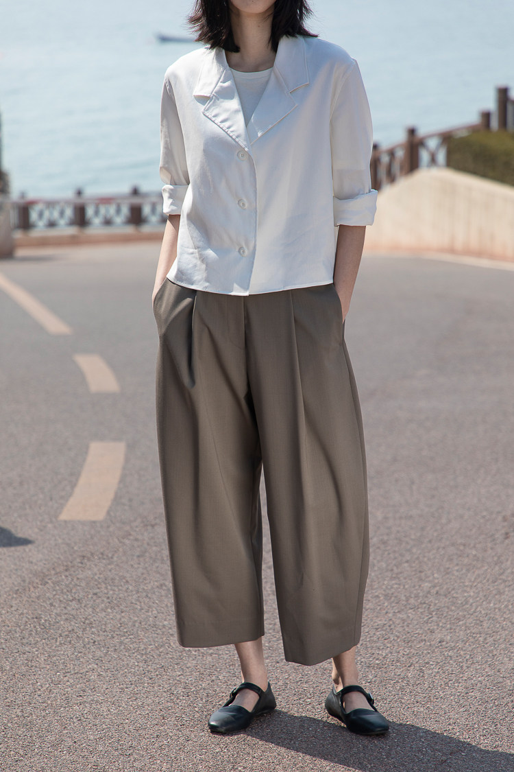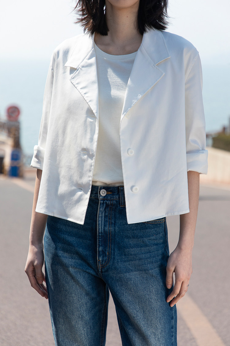 外套女 复古小短衬衫 团长家2025年春夏西装 领单排扣英伦长袖