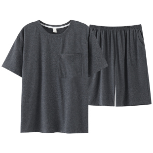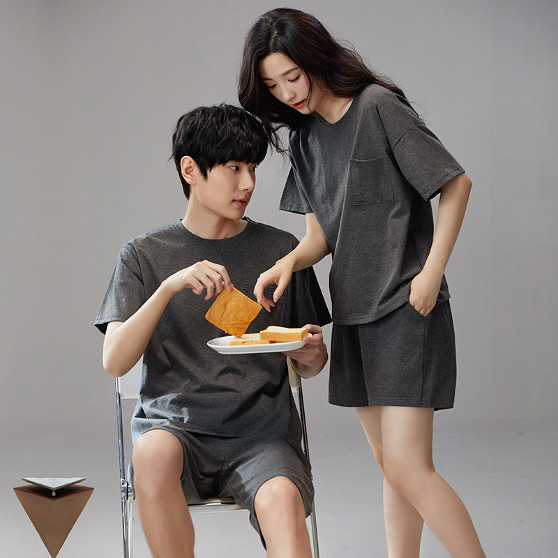 纯色圆领宽松大码 短袖 高级感夏天家居服 纯棉薄款 情侣睡衣男女夏季