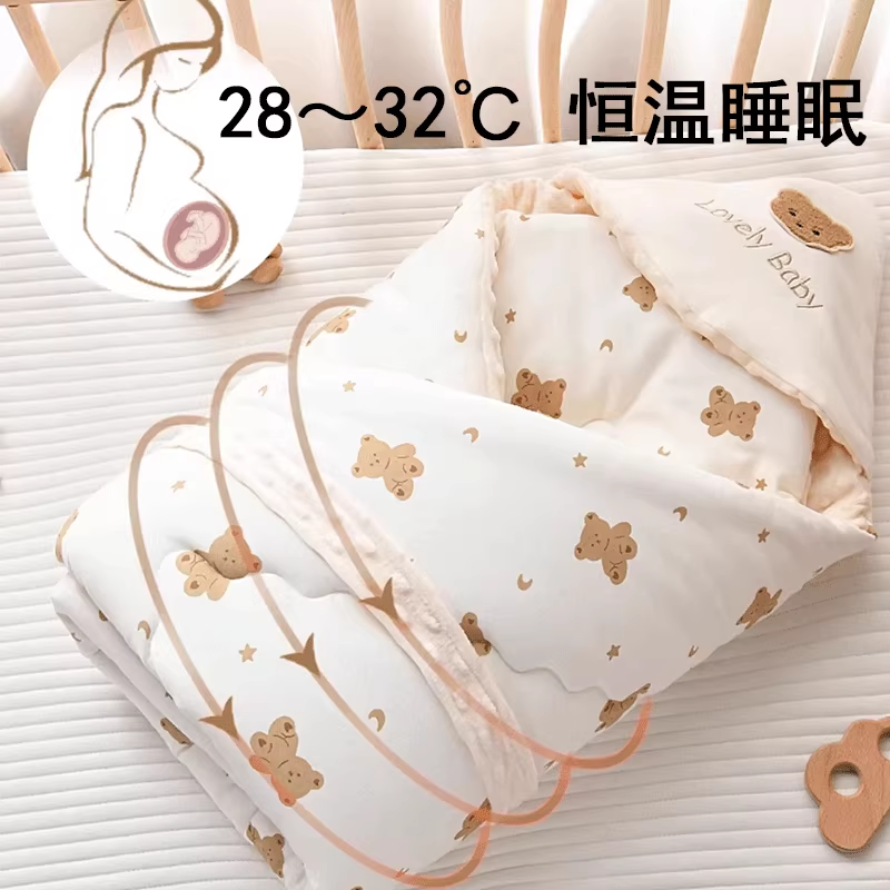 婴儿包被新生儿抱被初生豆豆绒纯棉a类春秋宝宝产房秋冬季 厚款