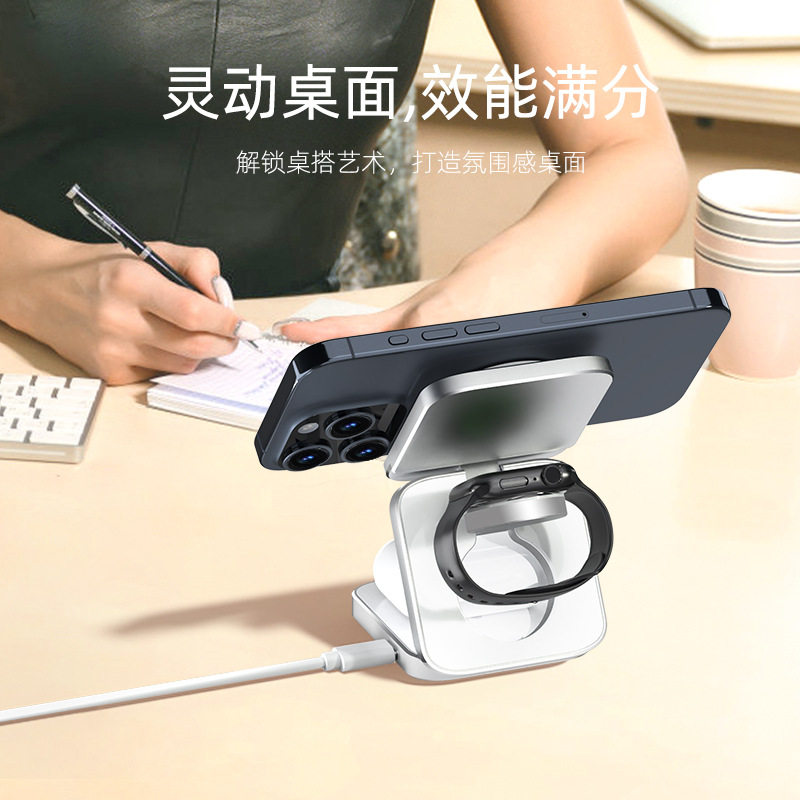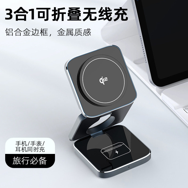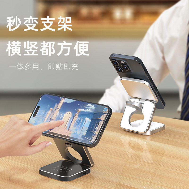 Magsafe无线充电器适用苹果15三合一磁吸折叠支架15iPhone14手机AppleWatch手表底座iWatch快充AirPods耳机