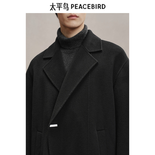 西装 过膝双面羊绒外套 领毛呢子风衣 中长款 纯羊毛双面呢大衣男士