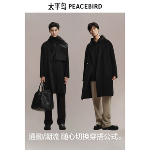 领双排扣呢子风衣外套加厚ins潮流 过膝西装 冬季 毛呢大衣男中长款