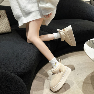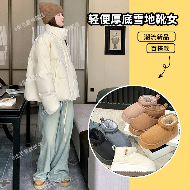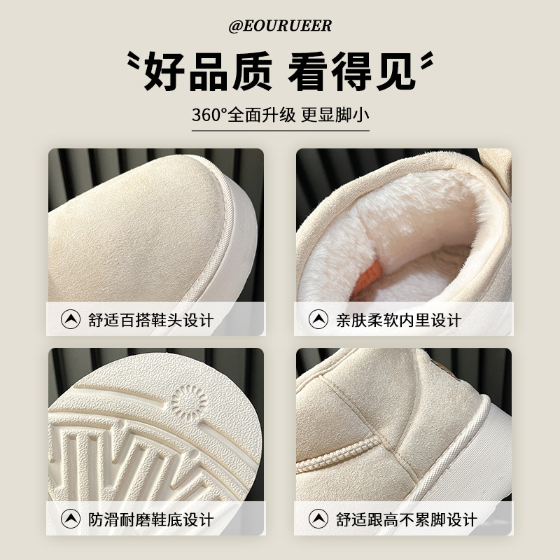 棉靴面包鞋 加绒加厚短筒毛毛鞋 2025新款 白色轻便厚底雪地靴女冬季