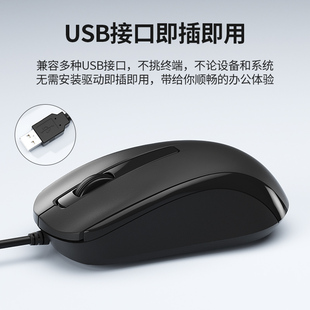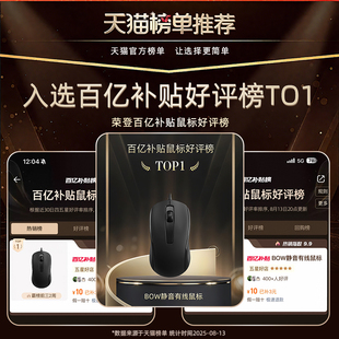 BOW静音有线鼠标笔记本台式 机电脑USB通用人体工学办公家便携无声