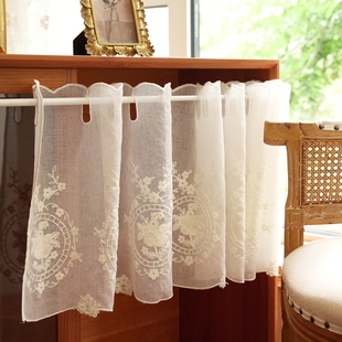 北欧新中式 镜中花半帘 半帘橱柜帘门帘小窗帘短帘免打孔遮景纱帘