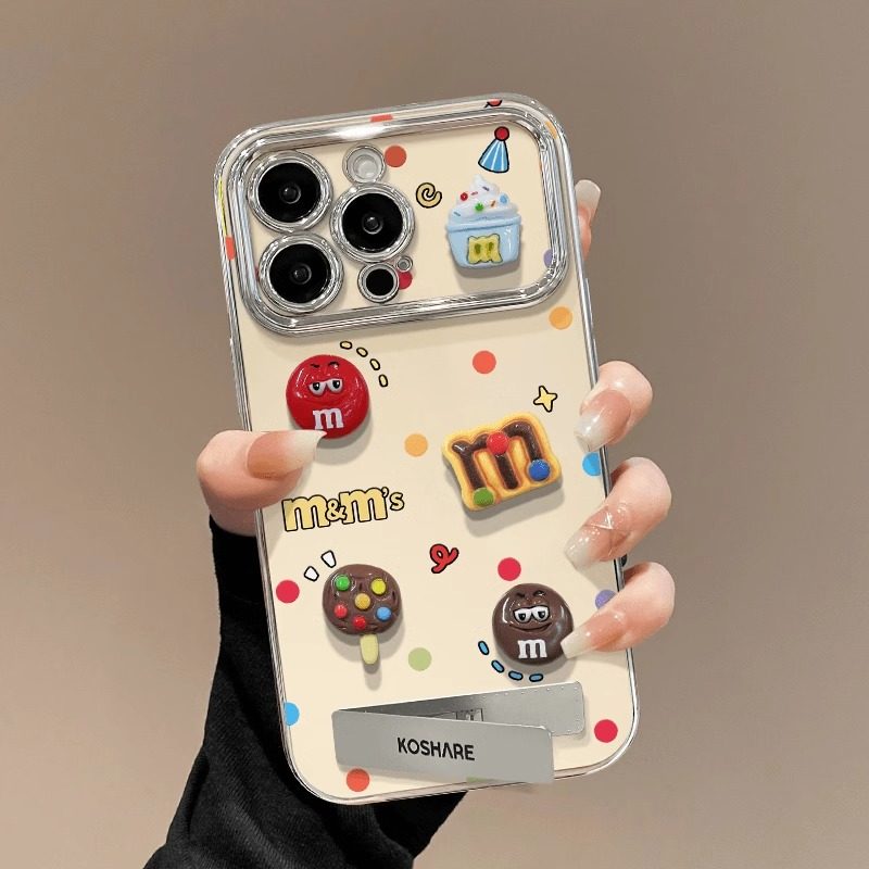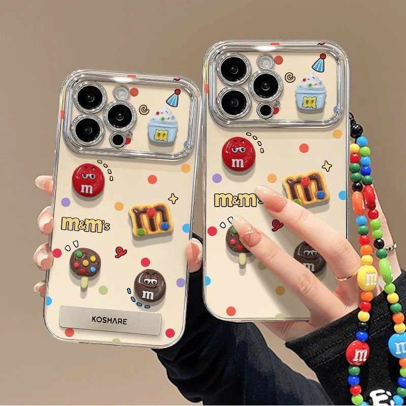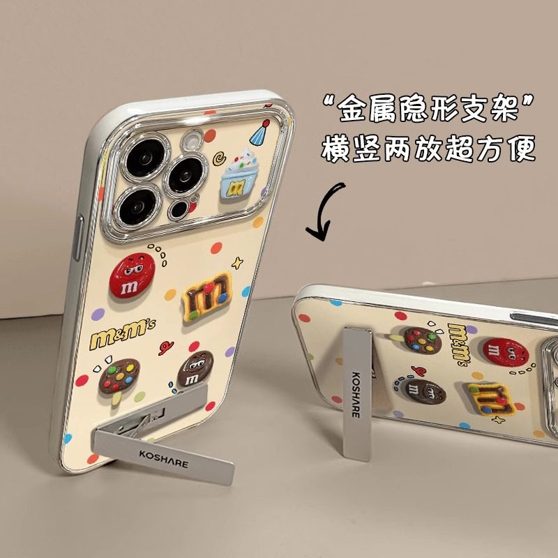 适用于苹果15proamx手机壳M豆手链diy多巴胺16金属折叠支架13配套苹果14苹果12pro防摔网红创意华为手机壳