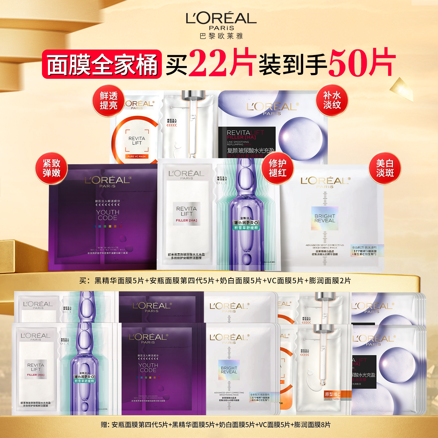 欧莱雅面膜全家桶安瓶面膜奶白黑精华补水 直播间立即抢购