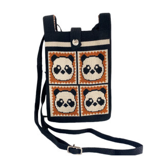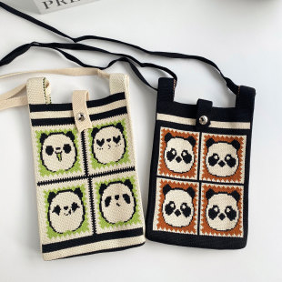 夏日斜挎针织百搭手机包熊猫包包迷你零钱小包便携可爱单肩包外出