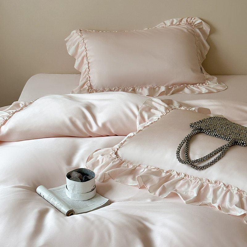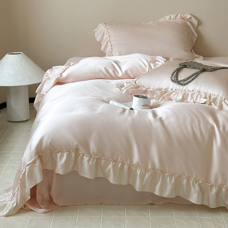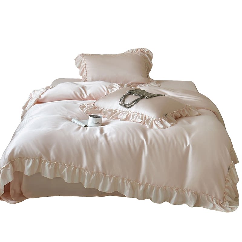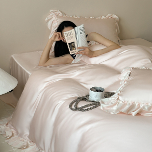 法式 丝滑裸睡高级被套床单床笠 粉色进口兰精天丝四件套公主风夏季