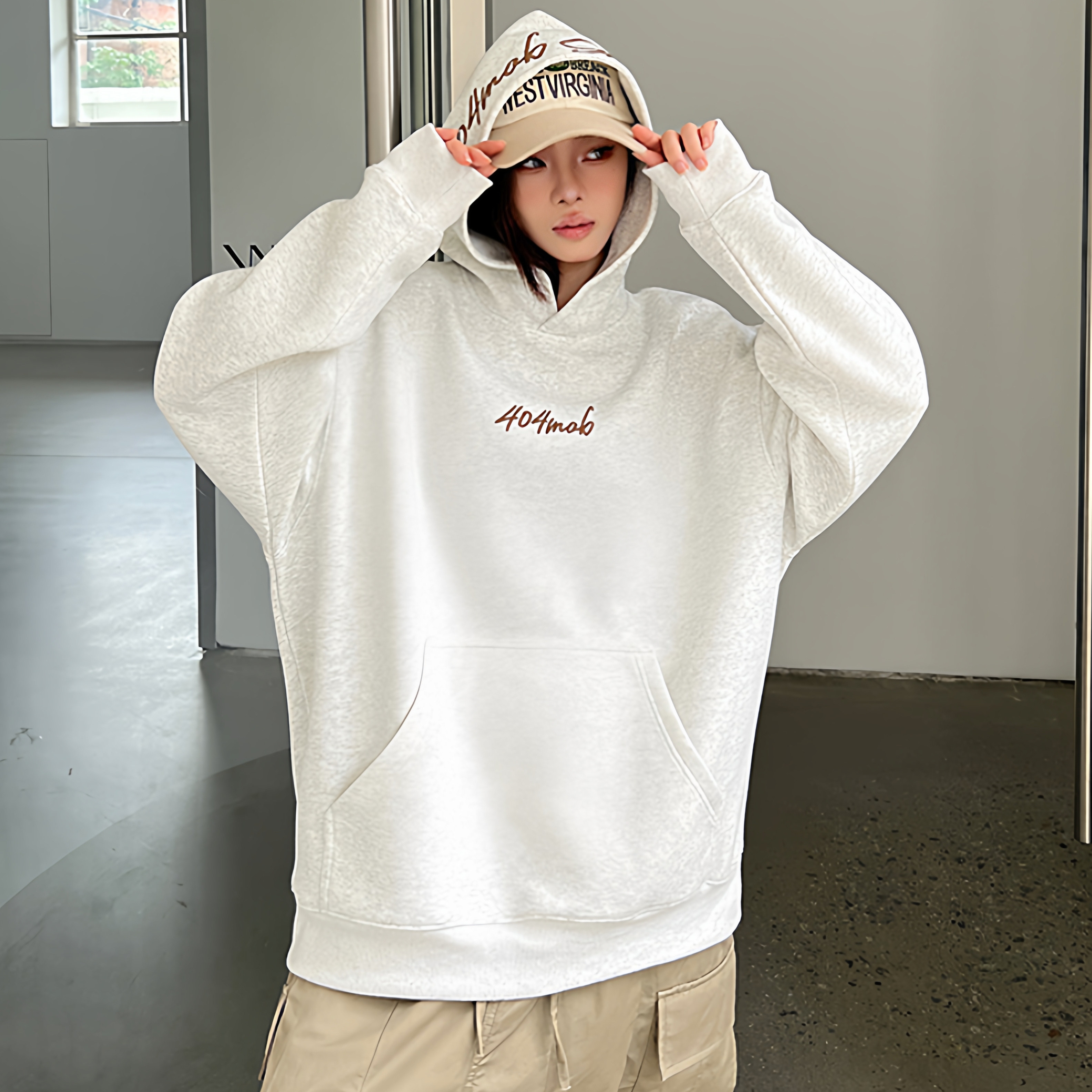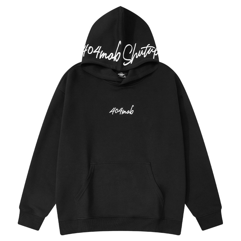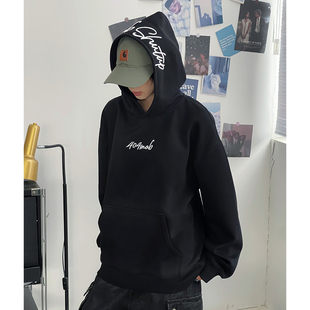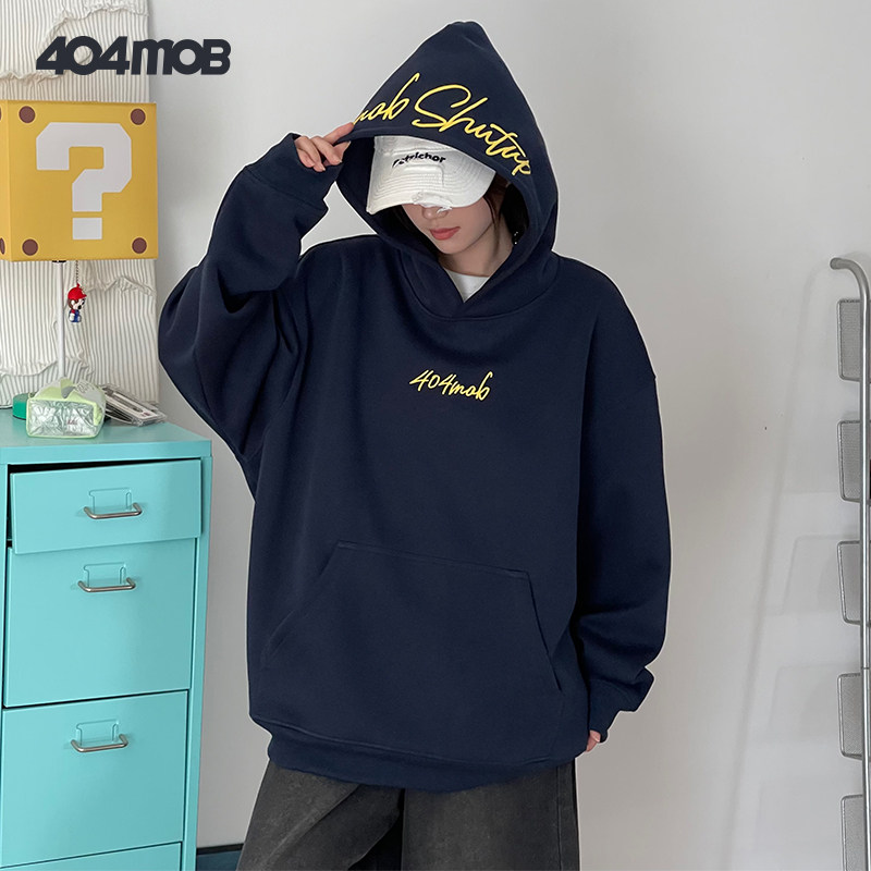 复古花体字母刺绣连帽卫衣男情侣帽衫 404MOB美式 秋 黄子弘凡同款