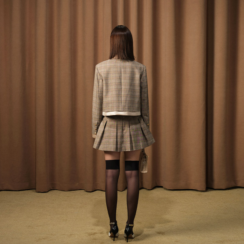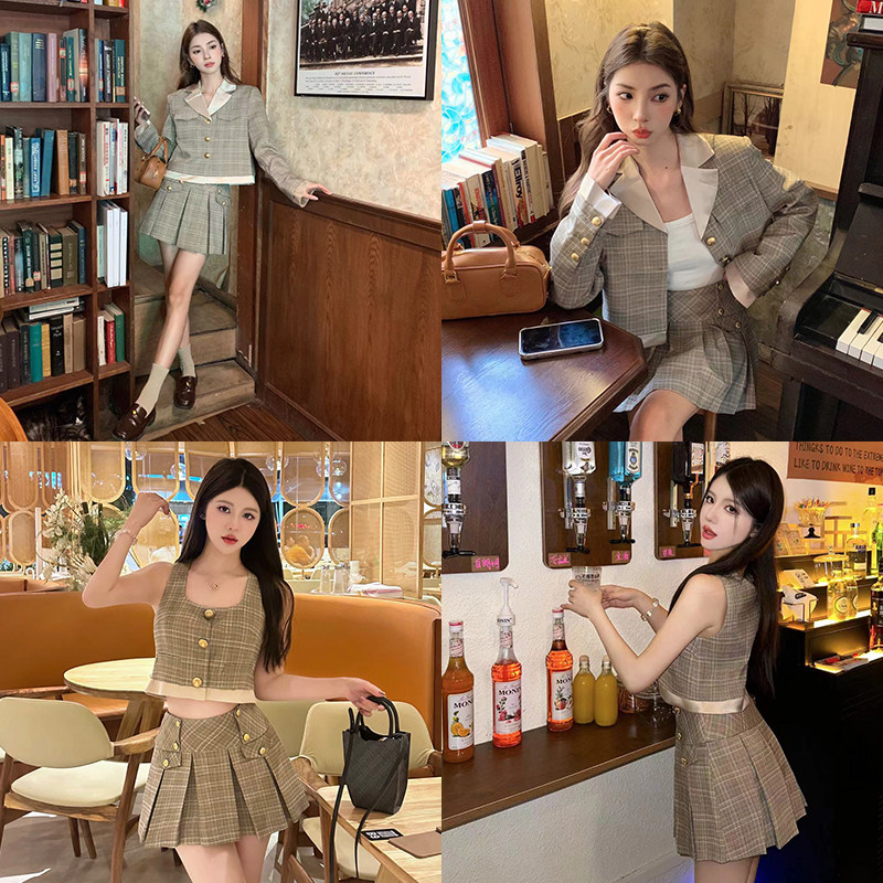 套装 DIANA 新款 俏皮秋冬时尚 VEVINA复古格纹外套背心百褶裙套装