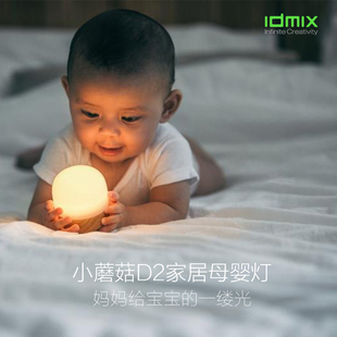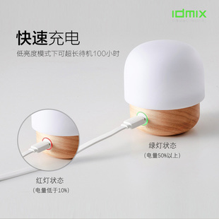 idmix小蘑菇D2天然原木母婴灯充电便携超长待机1600毫安电池小夜灯卧室母婴儿喂奶护眼可调光LED床头灯