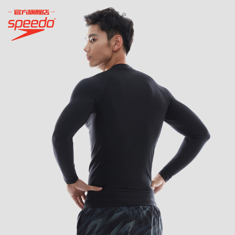 泳衣温泉风上装 Speedo 纯色防晒男子长袖 Eco环保系列 速比涛