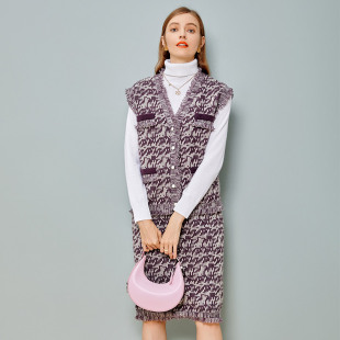 皮皮狗商场同款 纯羊绒背心马甲 女士提花V领女开衫