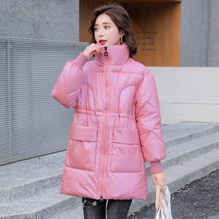 宽松中长款 韩版 立领羽绒棉服棉衣 胖MM亮面棉袄女2025秋冬新款 大码