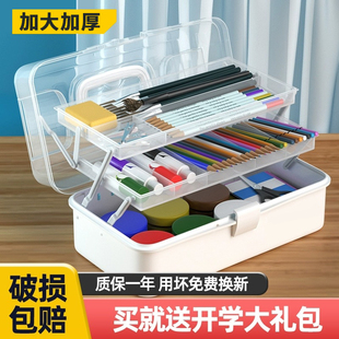 美术生工具箱大号颜料文具收纳箱画画箱三层画笔水彩笔收纳盒用品