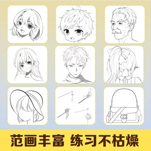 墨点美术 配饰线稿结构动态光影空间描绘线描画画基础自学教程绘画素描临摹卡通画册 超级漫画专项课堂手绘描摹本动漫人物发型服装