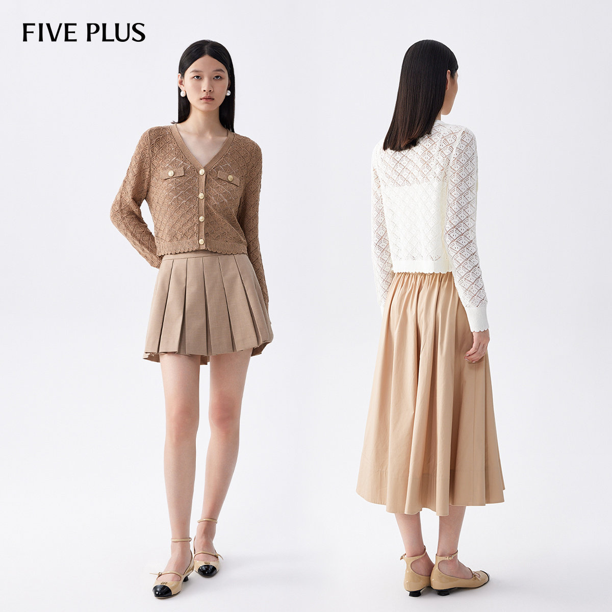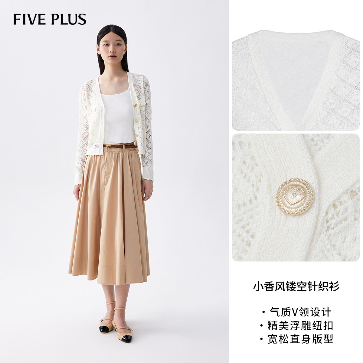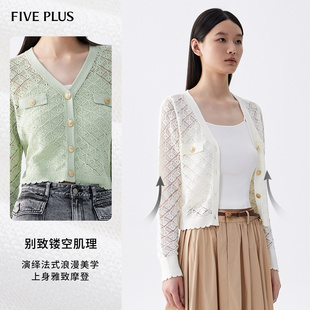 上衣V领开衫 女长袖 单排扣镂空肌理 PLUS针织衫 FIVE