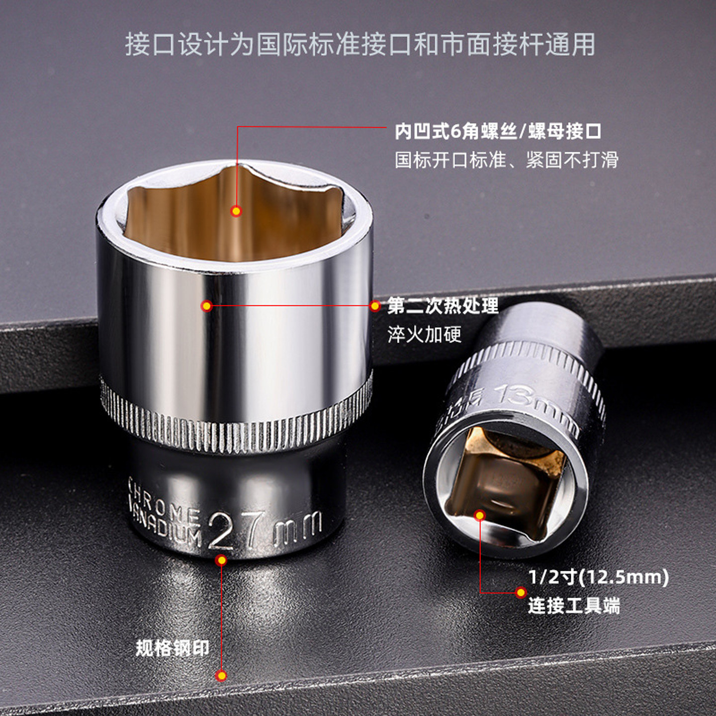 32mm外六角套筒头电动6角套头工具 扳手8 2铬钒钢大飞短套筒套装