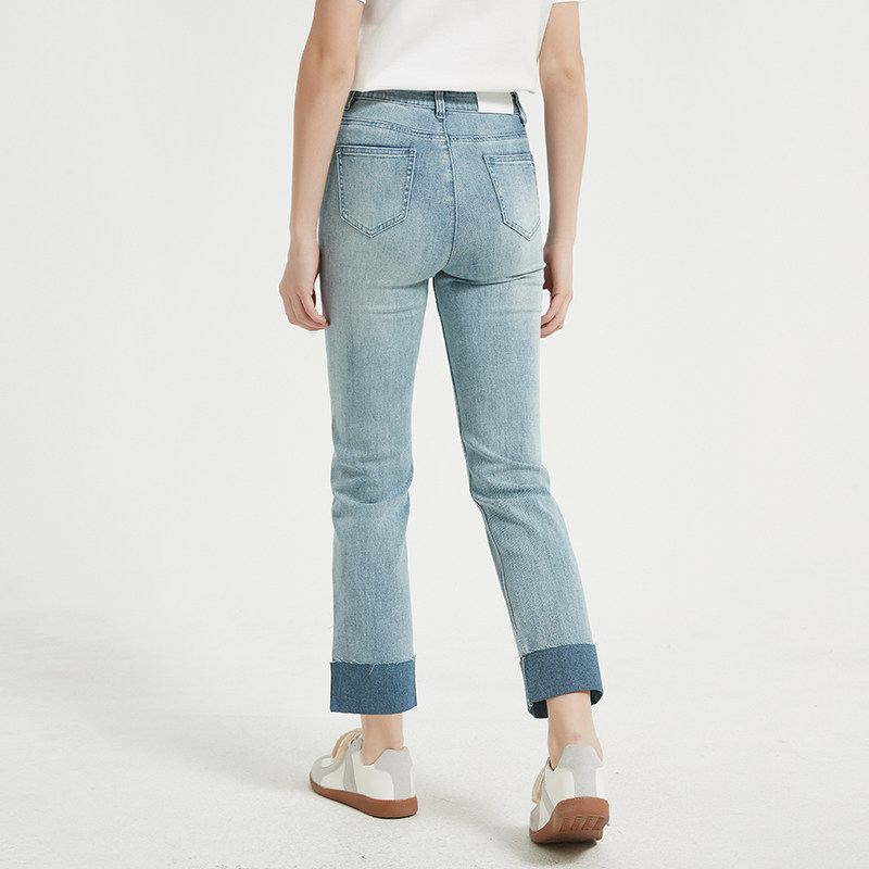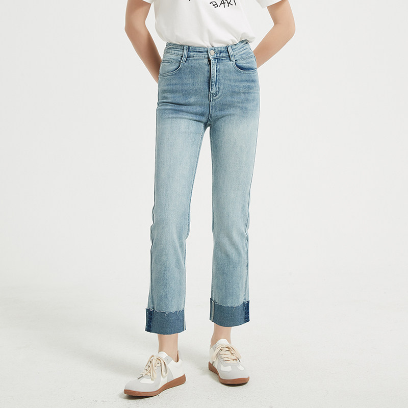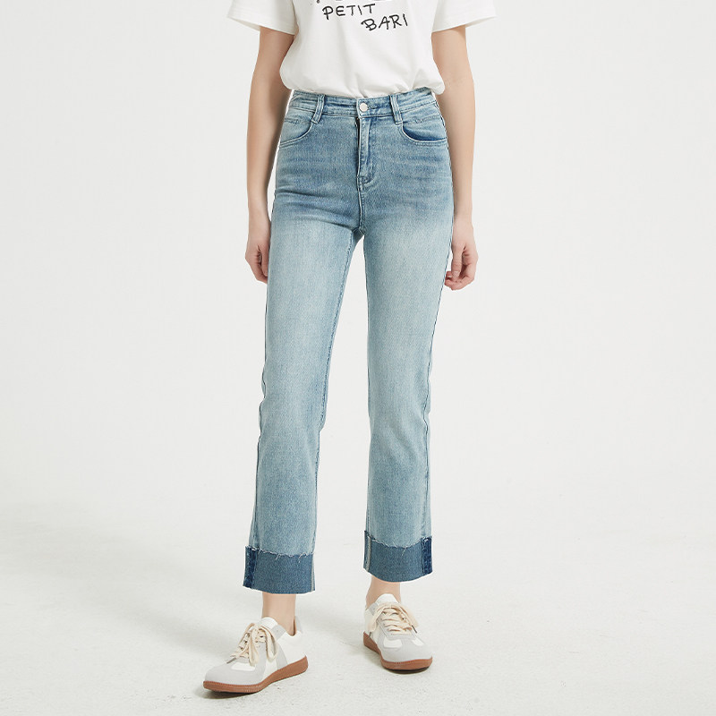 卷边显瘦显高铅笔裤 Petit 九分紧身小脚裤 女 Bari春夏棉弹牛仔裤