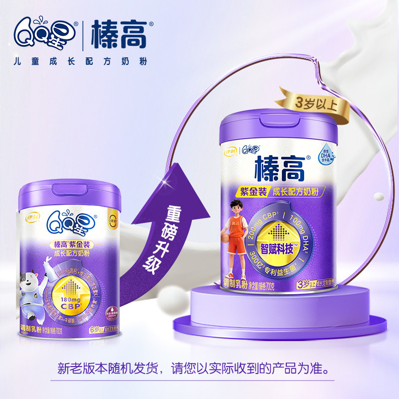 伊利QQ星榛高紫金3岁以上4段CBP儿童学生高钙牛奶粉700g 1罐