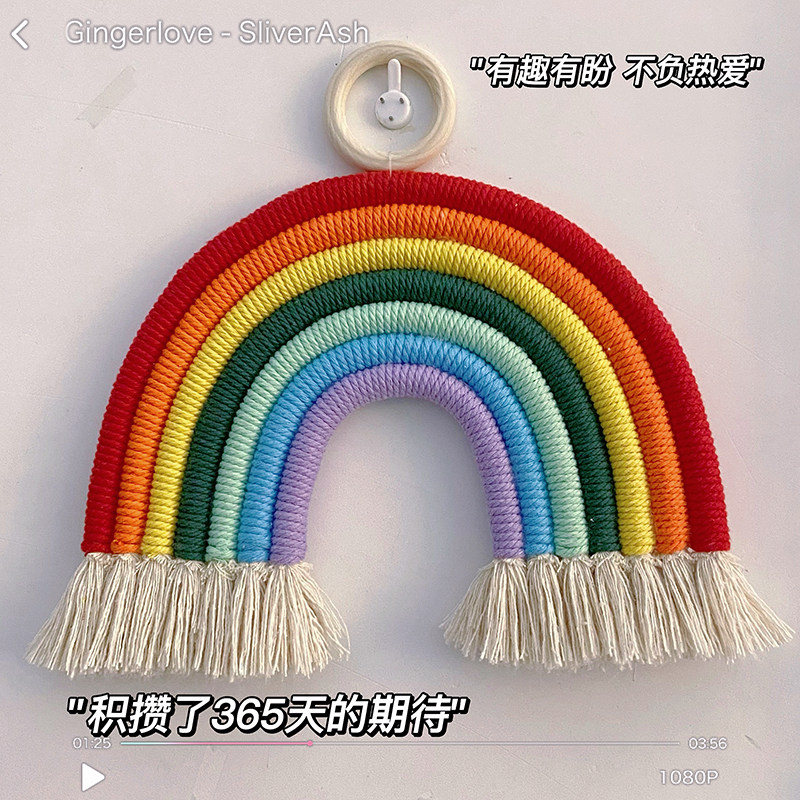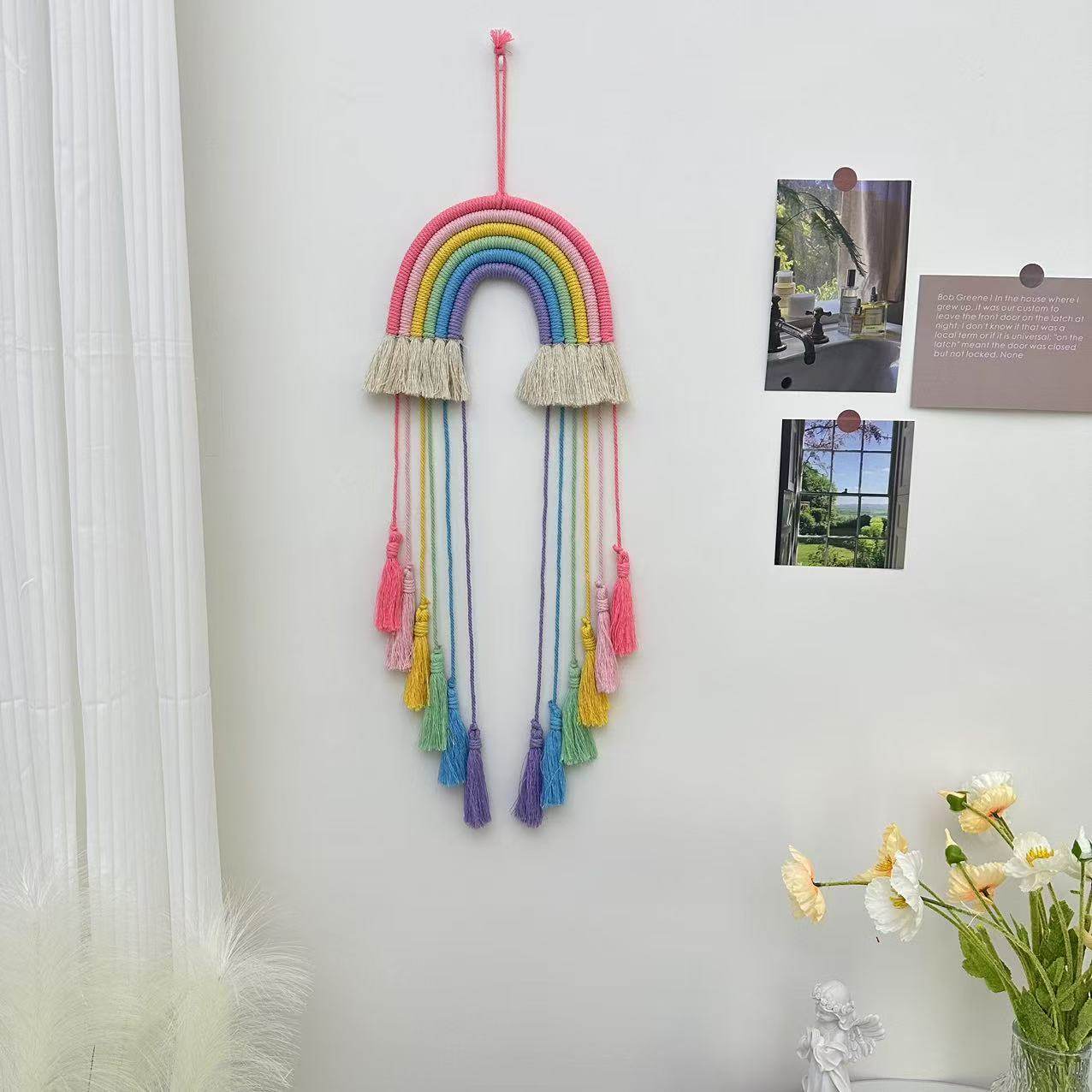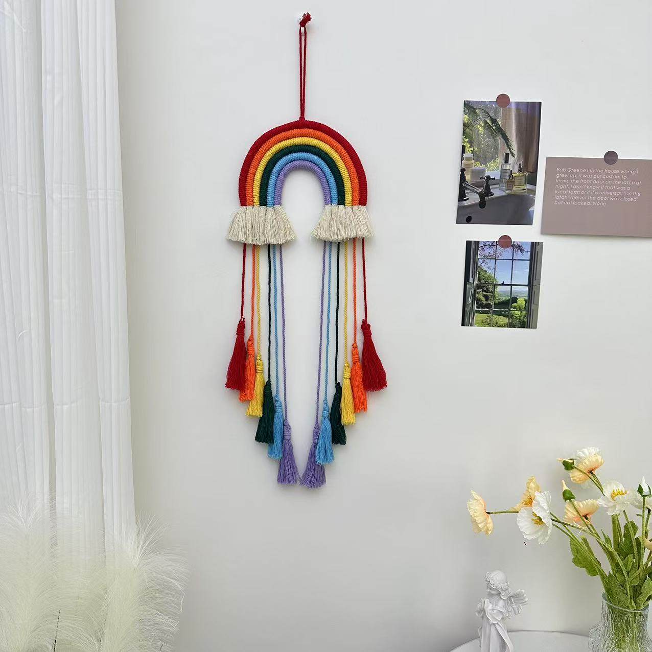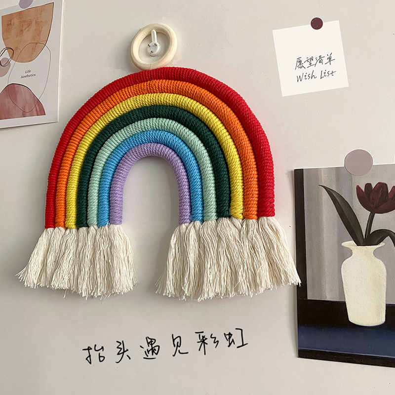 ins北欧风七色彩虹挂饰手工棉绳编织壁式 饰挂件 家居儿童房创意装