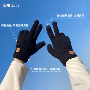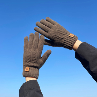 加厚纯色针织毛线保暖加绒触屏开车骑行手套 韩版 秋冬季 男女情侣款