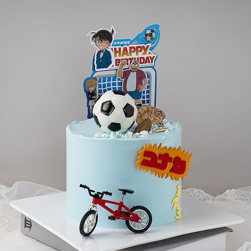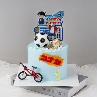极速名侦探柯南主题蛋糕装 饰插牌足球自行车N摆件男孩儿童生日派