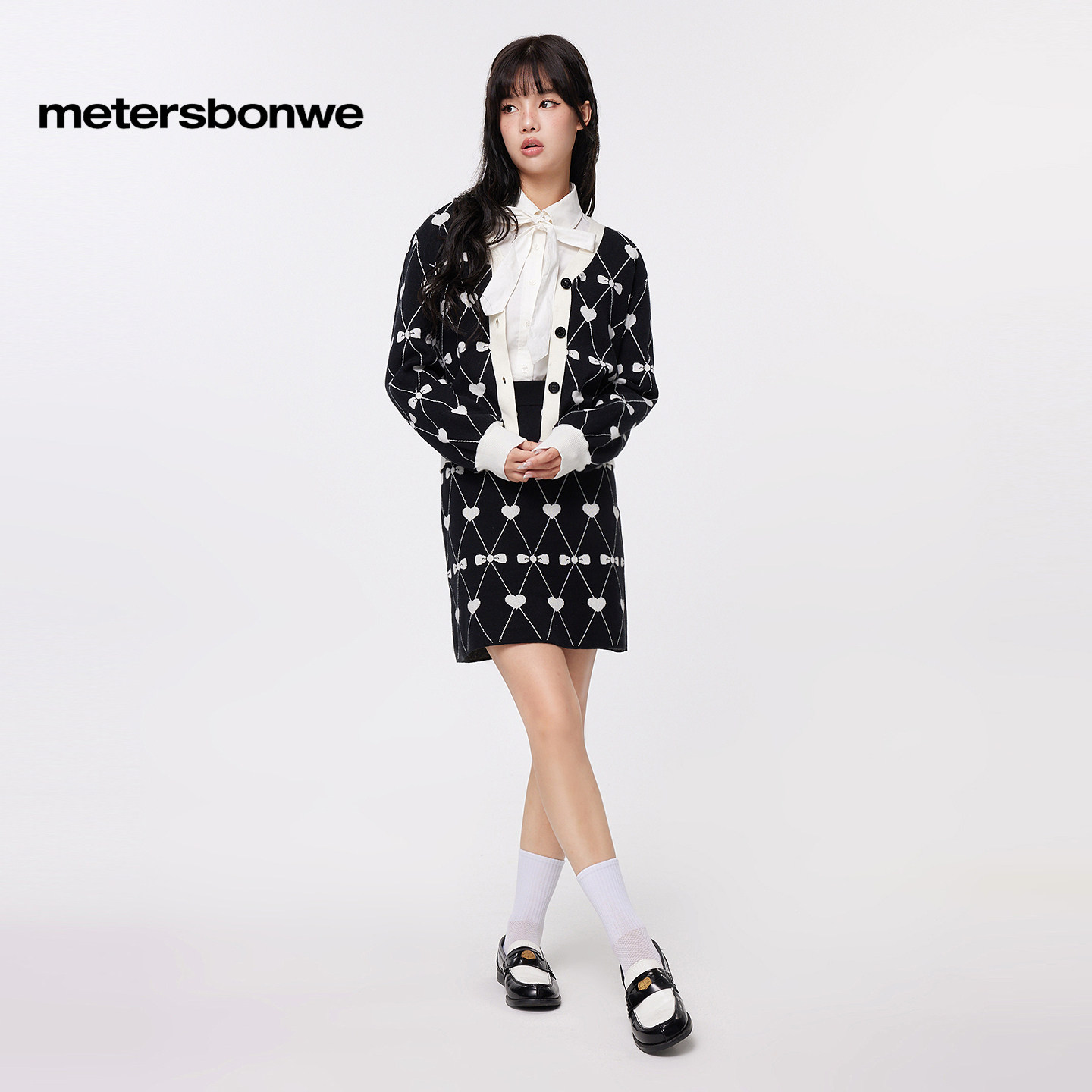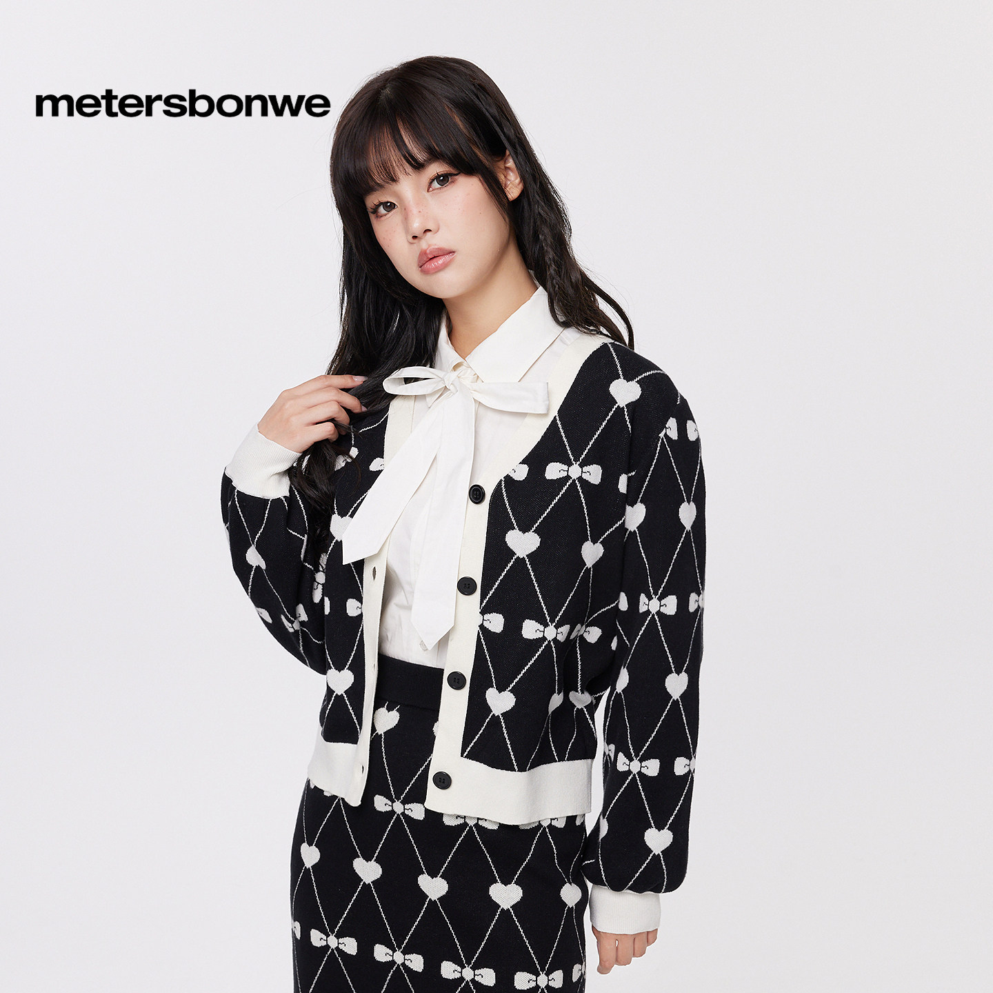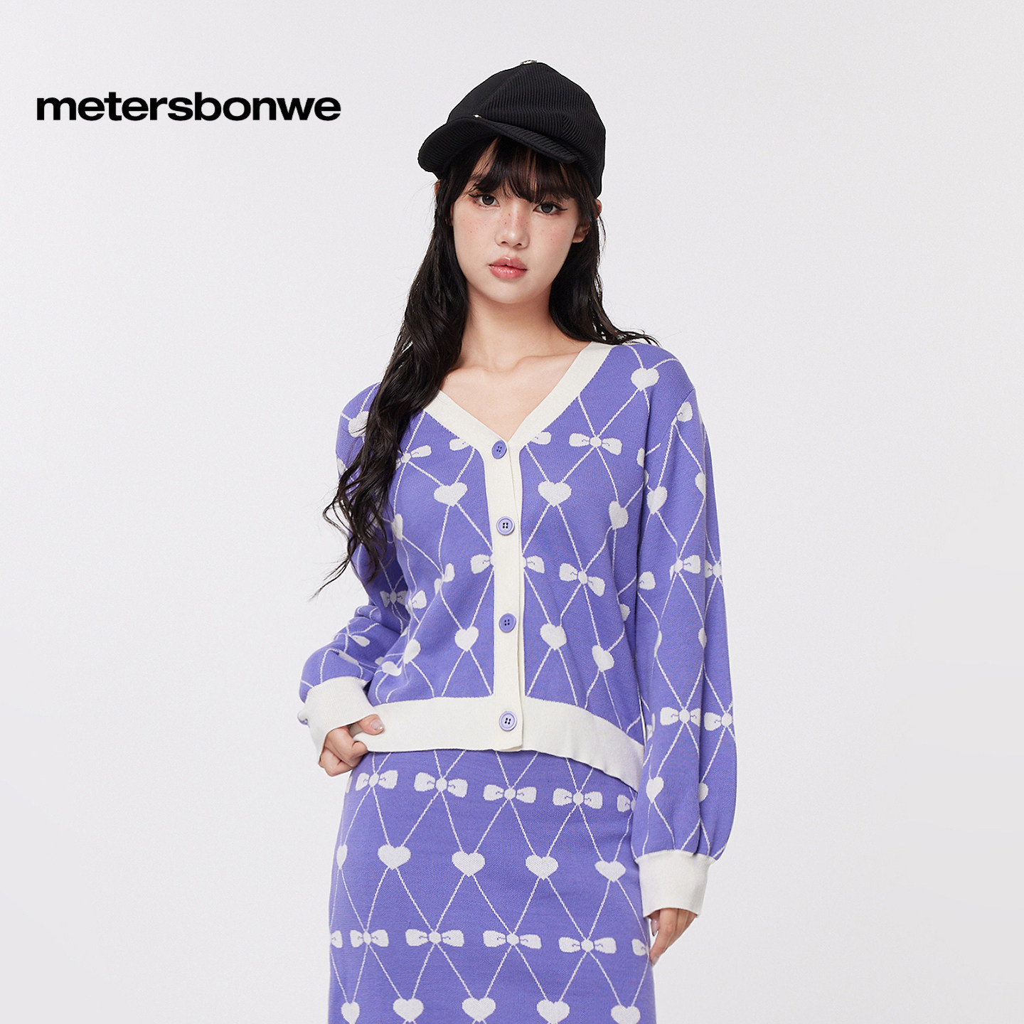 美特斯邦威针织开衫 潮小印花百搭纯棉舒适女毛 女士26春新款