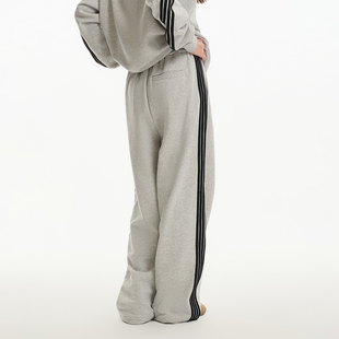 宽松黑色休闲裤 加绒卫裤 子女秋冬运动裤 灰色弯刀裤 长裤 oneup美式
