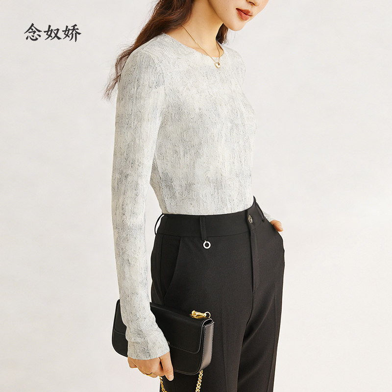 上衣 艺术晕染长袖 念奴娇早秋氛围感穿搭拼接针织衫 女2025新款