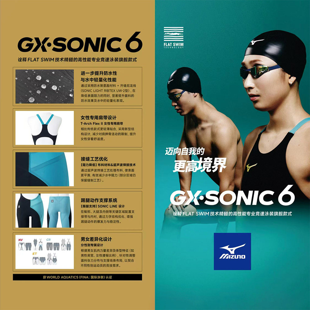 六代鲨鱼皮专业竞速快速泳衣NV 日本Mizuno美津浓GX sonic6女款