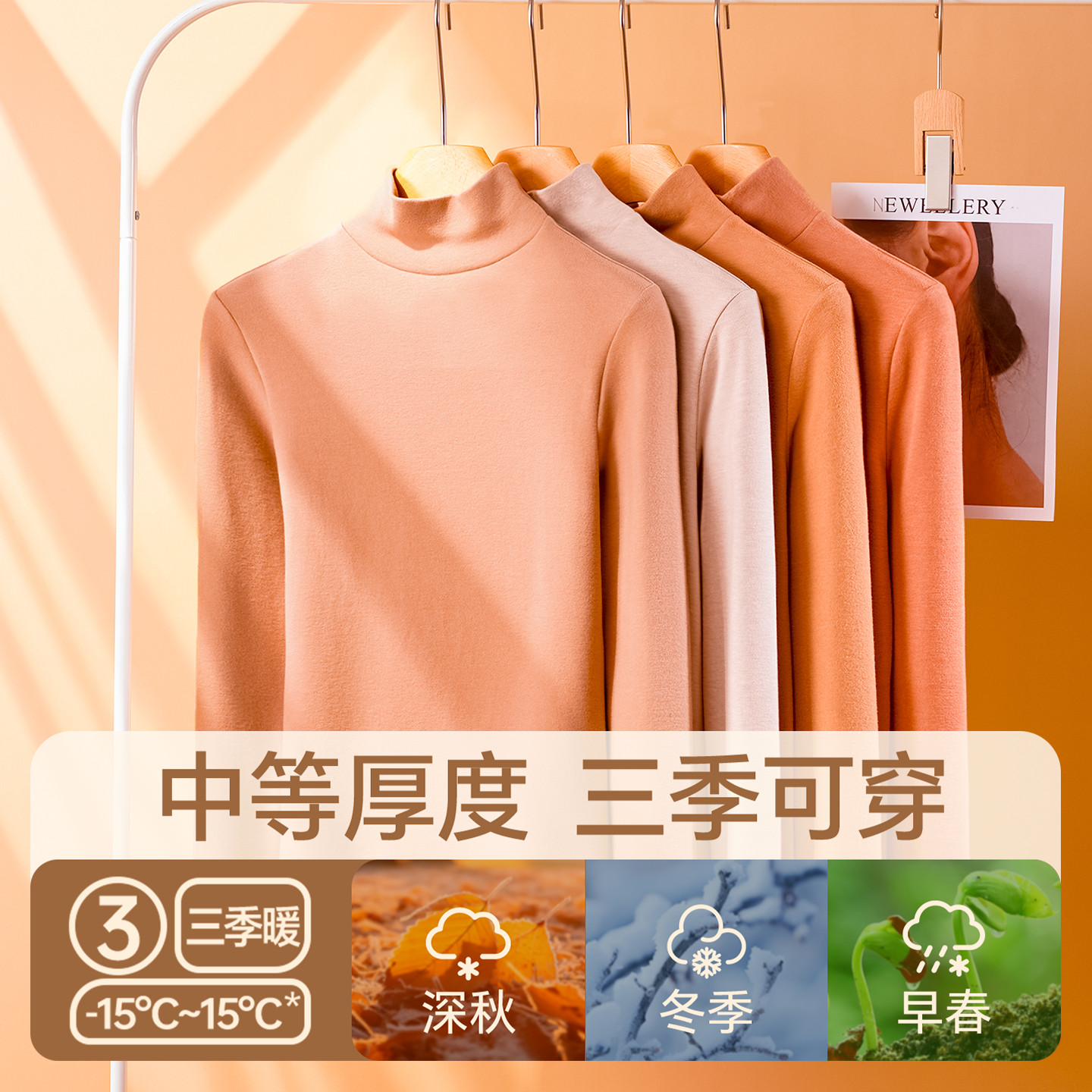 简云羊毛蚕丝半高领打底衫 T恤上衣冬 女秋衣保暖内衣德绒内搭长袖