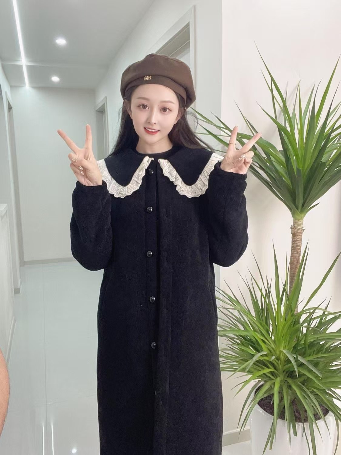 毛呢外套 jk原创日系学院风正肩牛角扣大衣加厚中长款 阿车家 大码