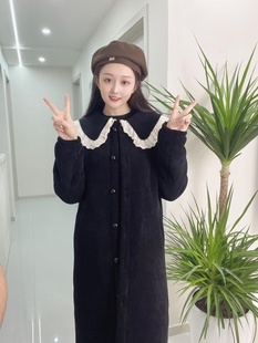 BULE蓝色星球女装 复古千金氛围感系带毛毛翻领双排扣毛呢外套 冬季