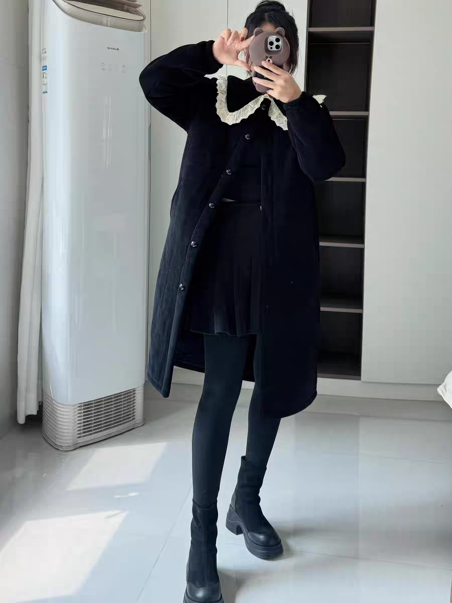 新款 立领毛呢外套女2025冬季 双面羊毛大衣 黑色中长款 爱情魔鬼鱼