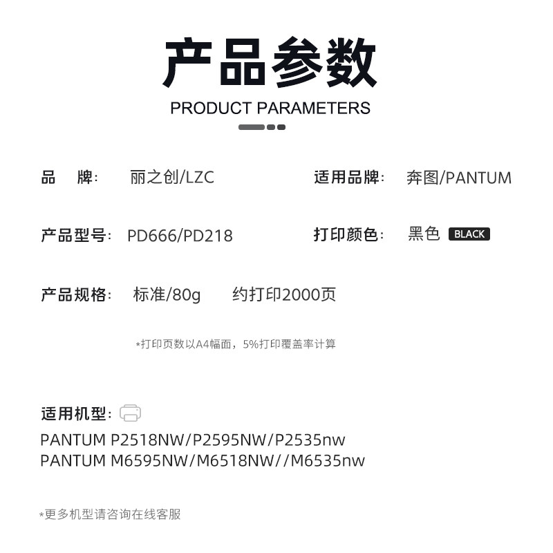 P2535nw激光打印机M6518nw一体机复印扫描M6595nw加粉 P2595nw 适用奔图M6535nw碳粉PD666墨粉PANTUM P2518nw