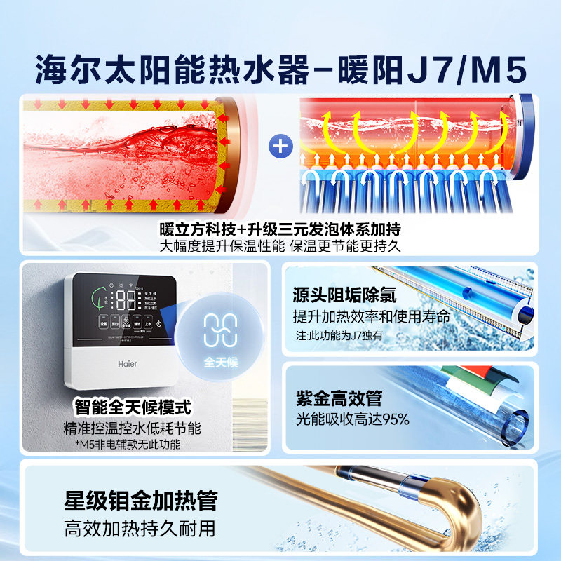 海尔太阳能热水器新款 光电加热一体真空管农村家用非电M5可选