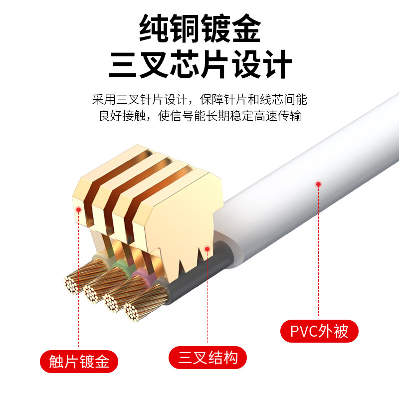 百缆 80米m成品二芯四芯电话线延长 电话线固定座机电话线2芯4芯1