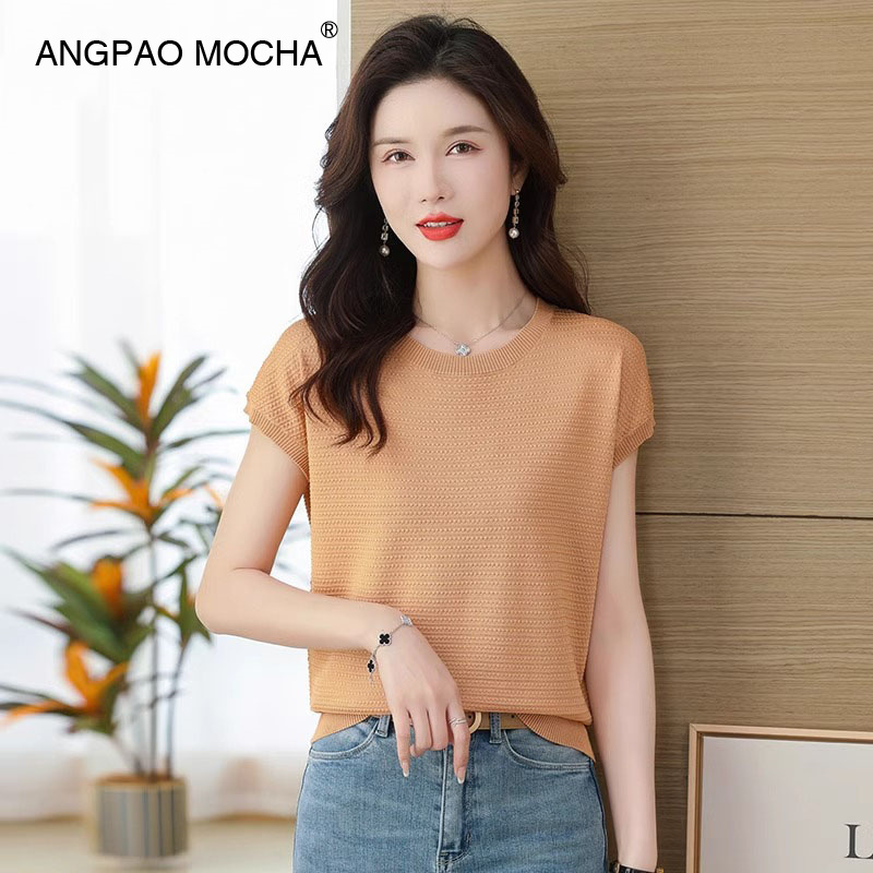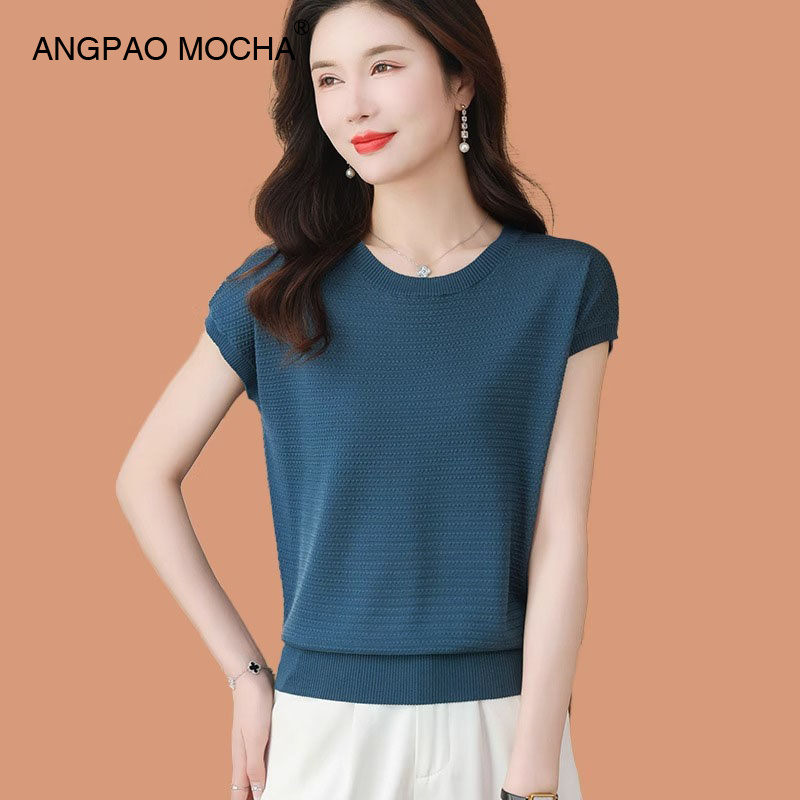 冰丝针织蝙蝠衫 真丝短袖 显瘦洋气妈妈薄款 2024新款 上衣 t恤女夏装