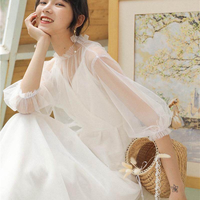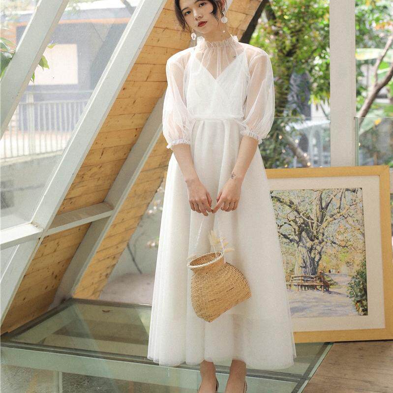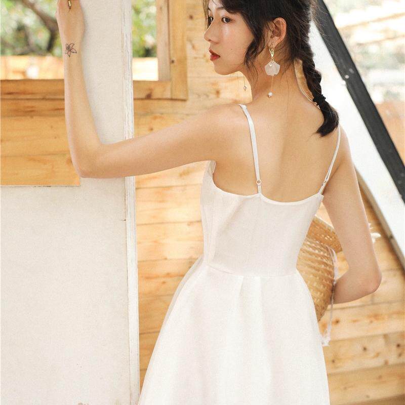 法式 轻婚纱礼服白色吊带连衣裙子海边度假长裙旅拍沙滩裙三亚穿搭