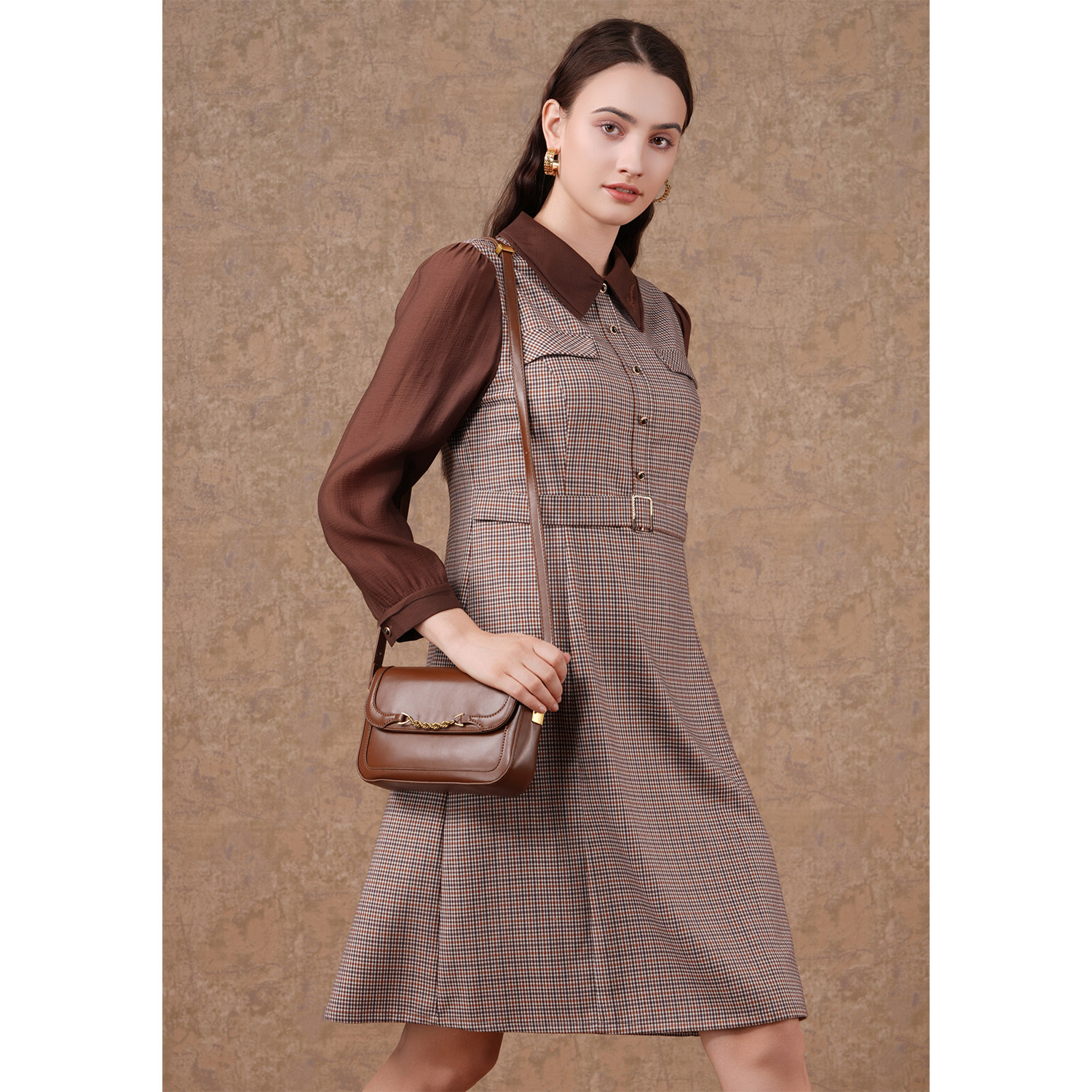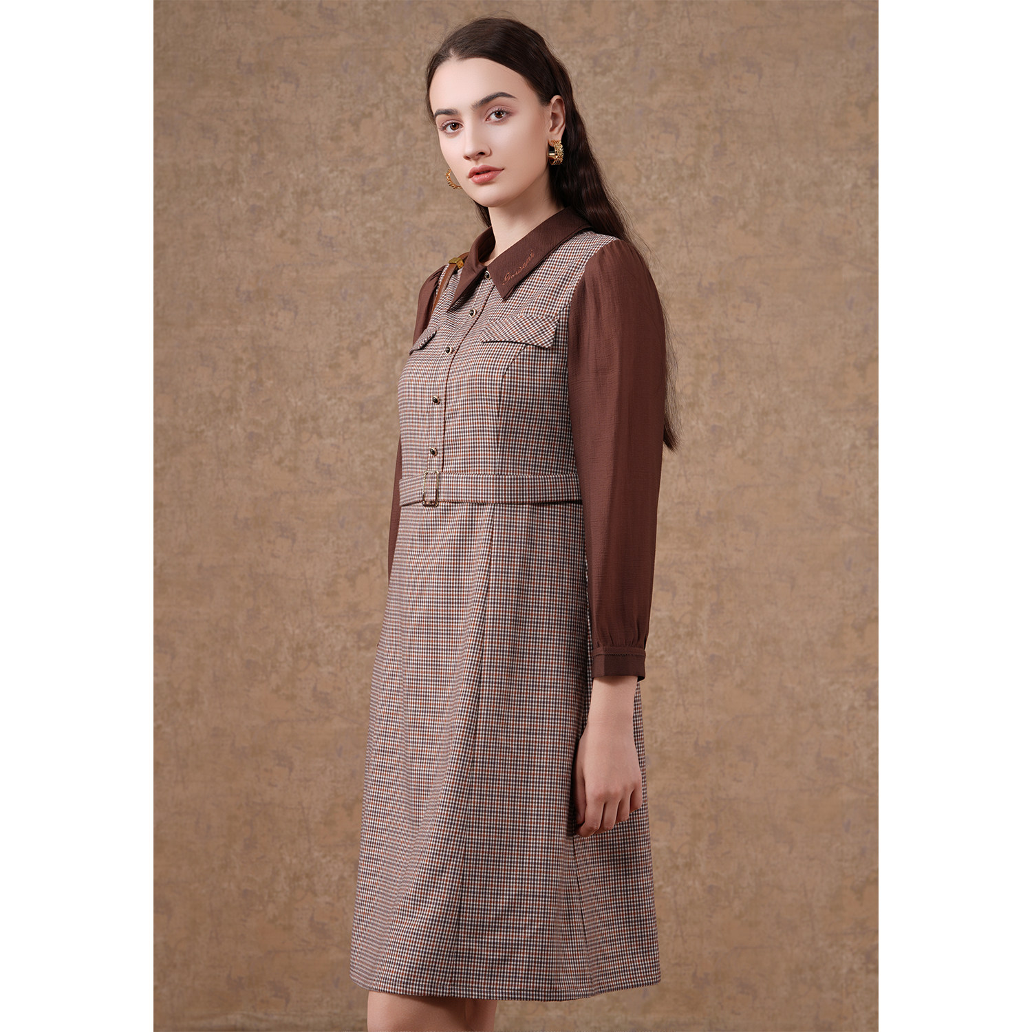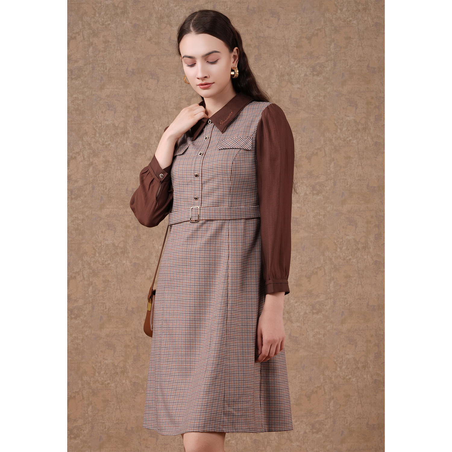 乔万尼新款 复古英伦风连衣裙好看流行气质优雅假两件设计EF3E856