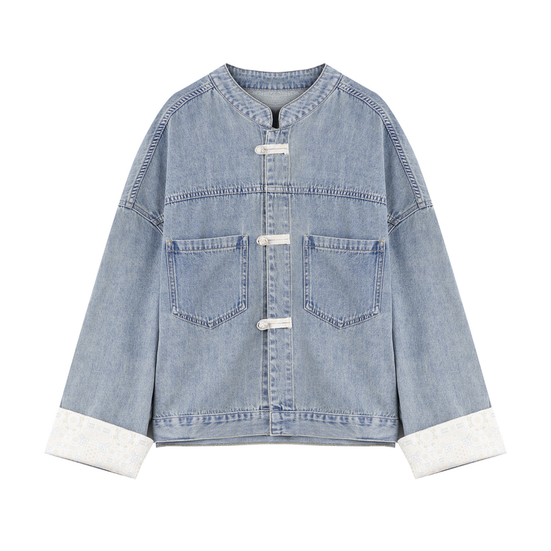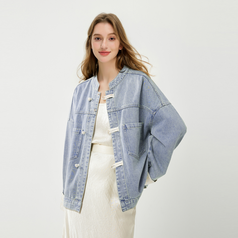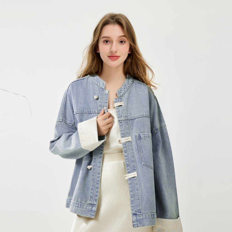 盘扣设计外套 气质通勤新中式 秋水伊人简约牛仔外套2025年秋季 新款